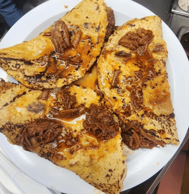 Our QuesaBirria is a delicious quesadilla made with a handmade corn tortilla and stuffed with birria and Monterey Jack cheese! It's topped off with our flavorful consume!