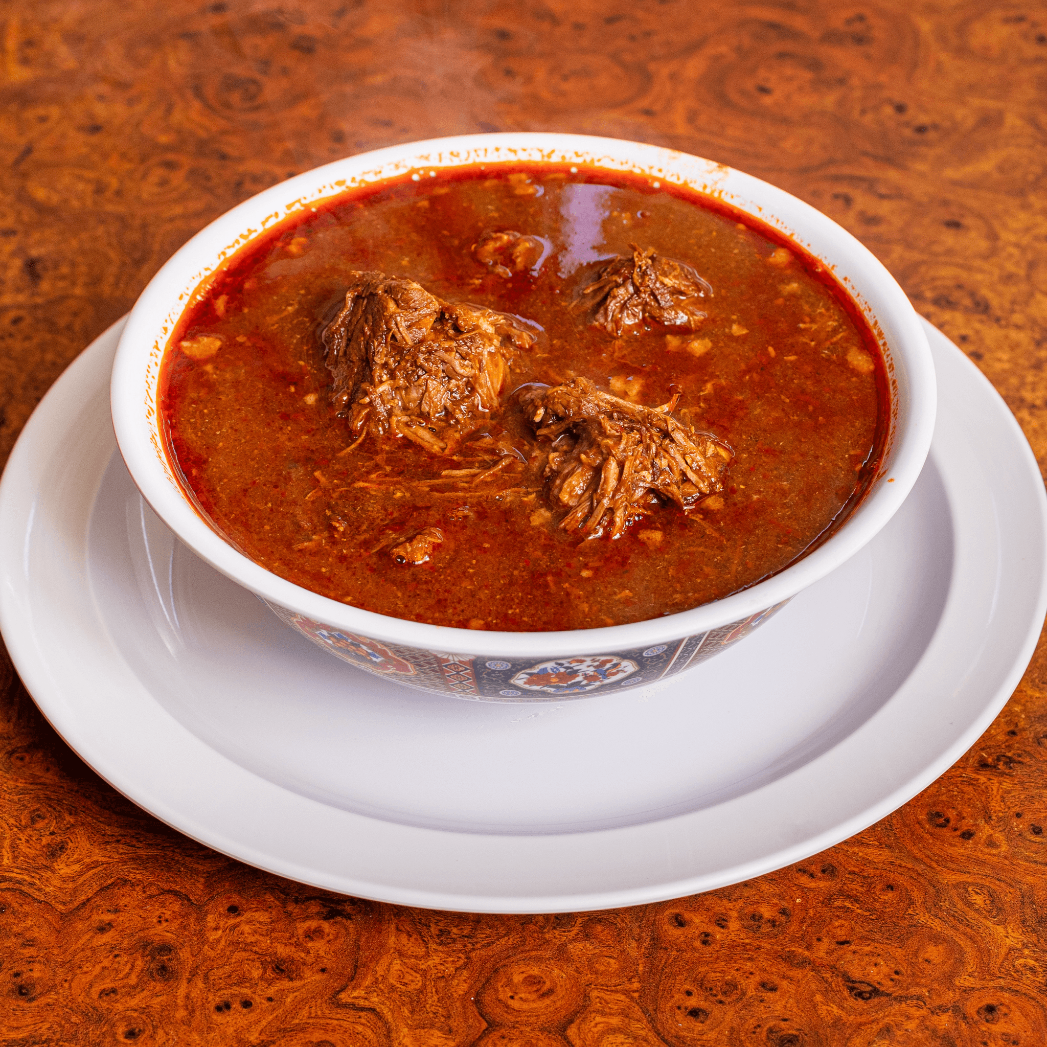 Beef stew served in our flavorful soup. Onions, cilantro, lemons, red sauce, and four (4) corn tortillas served on the side